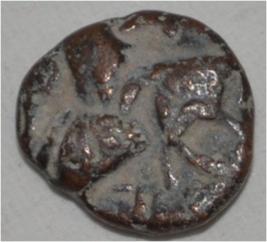 Obverse Horseman to the left. Man on the horseback. Reverse Traces of Sri Tirlok .