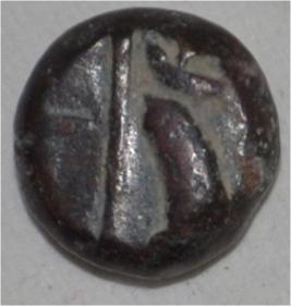 Obverse Horseman to the left. Man on the horseback and flagpole at the back of horse. Reverse Traces of legend.