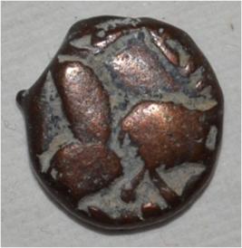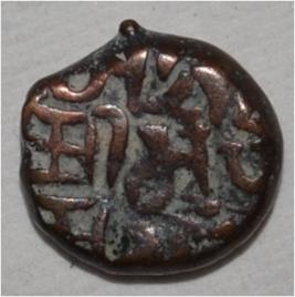 Obverse Horseman to the left. Man on the horseback. Reverse Traces of Sri Megha .