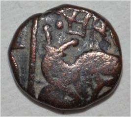 Obverse Horseman to the left. Man on the horseback and flagpole at the back of horse. Reverse Couchant bull facing right and hump on the top.