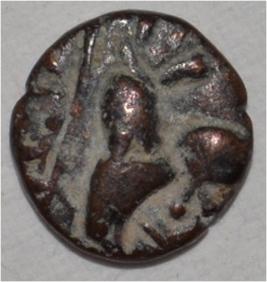 Obverse Horseman to the left. Man on the horseback and flagpole at the back of horse. Reverse Traces of Maharaja Sri Megha .