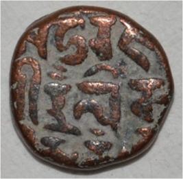 Obverse Horseman to the left. Man on the horseback and flagpole at the back of horse. Reverse Traces of Maharaja Sri Trilok .