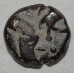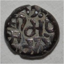 Obverse Horseman to the left. Man on the horseback. Reverse Traces of Sri Megha Chandra .