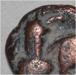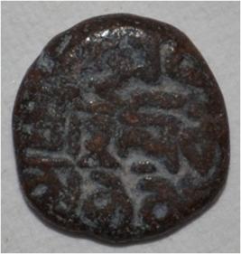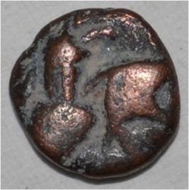 Obverse Horseman to the left. Man on the horseback. Reverse Traces of Sri Trilok Chandra .