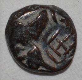 Obverse Horseman to the left. Man on the horseback. Reverse Traces of Sri Megha Chandra .