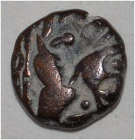 Obverse Horseman to the left. Man on the horseback and flagpole at the back. Reverse Traces of Maharaja Singar Chandra .