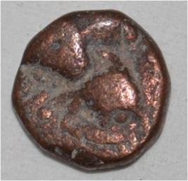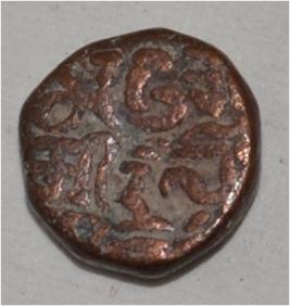 Obverse Horseman to the left. Man on the horseback. Reverse Traces of Maharaja Sri Trilok .
