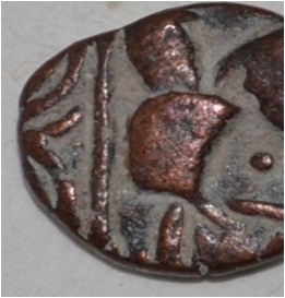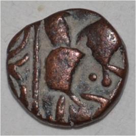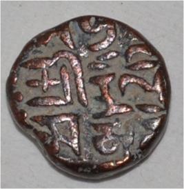 Obverse Horseman to the left. Man on the horseback and flagpole at the back of horse. Reverse Traces of Sri Trilok Chandra .