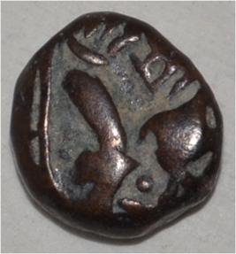 Obverse Horseman to the left. Man on the horseback and flagpole at the back of horse. Reverse Traces of Sri Megha .