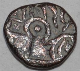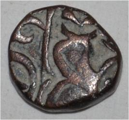 Obverse Horseman to the left. Man on the horseback and flagpole at the back of horse. Reverse Couchant bull facing right and traces of legend on the top.