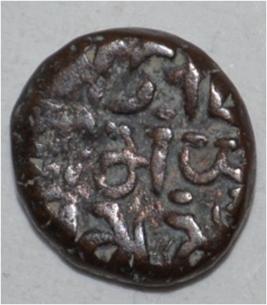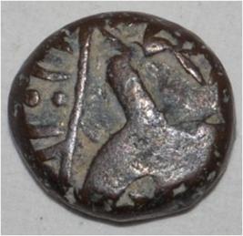 Obverse Horseman to the left. Man on the horseback and flagpole at the back of horse. Reverse Traces of Megha Chandra .