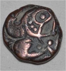Obverse Horseman to the left. Man on the horseback and flagpole at the back of horse. Reverse Couchant bull facing right and traces of legend on the top.