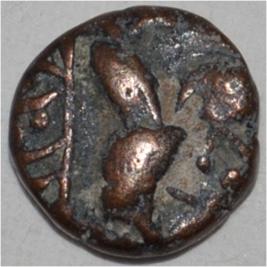 Obverse Horseman to the left. Man on the horseback and flagpole at the back of horse. Reverse Traces of Sri Magha Chandra .