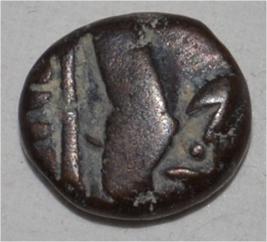 Obverse Horseman to the left. Man on the horseback and flagpole at the back of horse. Reverse Traces of legend.