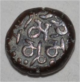 Obverse Horseman to the left. Man on the horseback and flagpole at the back of horse. Reverse Traces of Megha Chandra .