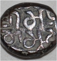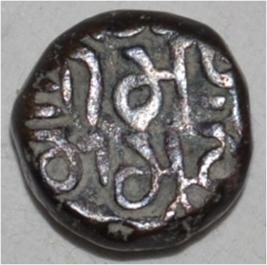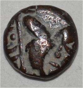 Obverse Horseman to the left. Man on the horseback and flagpole at the back of horse. Reverse Traces of Sri Megha Chandra .