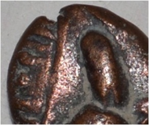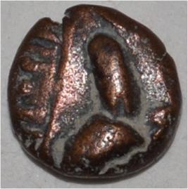 Obverse Horseman to the left. Man on the horseback and flagpole at the back of horse. Reverse Traces of Maharaja Megha .
