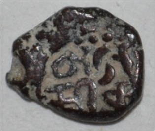 Coin in irregular shape. Obverse Horseman to the left. Man on the horseback and flagpole at the back of horse. Reverse Traces of legend.