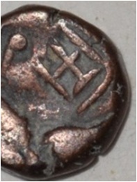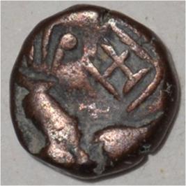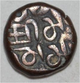 Obverse Horseman to the left. Man on the horseback. Reverse Traces of Sri Ma Chandra .