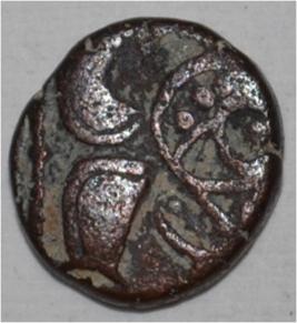 Obverse Horseman to the left. Man on the horseback and flagpole at the back. Reverse Couchant bull facing right and hump on the top.
