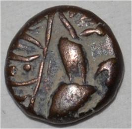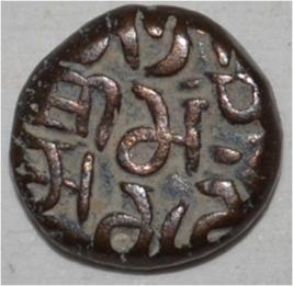 Obverse Horseman to the left. Man on the horseback and flagpole at the back of horse. Reverse Traces of Sri Megha Chandra .