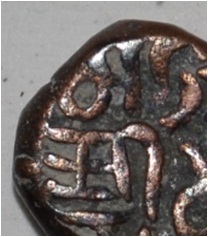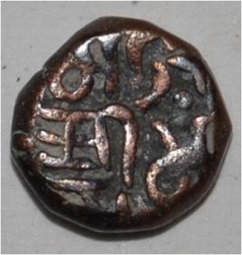 Obverse Horseman to the left. Man on the horseback and flagpole at the back. Reverse Traces of Maharja Sri Ma .