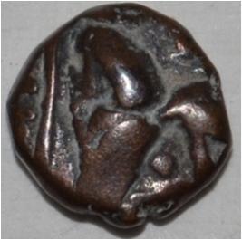 Obverse Horseman to the left. Man on the horseback and flagpole at the back of horse. Reverse Traces of legend .