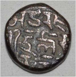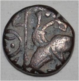 Obverse Horseman to the left. Man on the horseback and flagpole at the back of horse. Reverse Traces of Maharaja Sri Trilok .