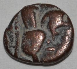 Obverse Horseman to the left. Man on the horseback and flagpole at the back of horse. Reverse Traces of legend.