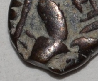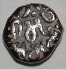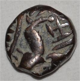 Obverse Horseman to the left. Man on the horseback and flagpole at the back of horse. Reverse Traces of Sri Megha Chandra .