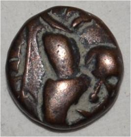 Obverse Horseman to the left. Man on the horseback and flagpole at the back of horse. Reverse Traces of Maharaja Sri Megha .
