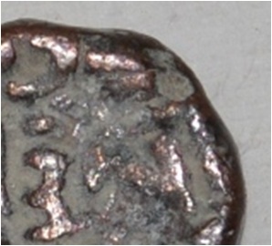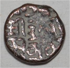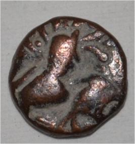 Obverse Horseman to the left. Man on the horseback. Reverse Traces of Sri Trilok Chandra .
