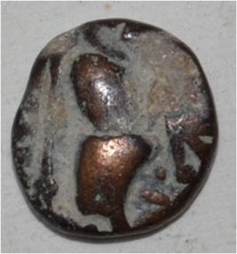 Obverse Horseman to the left. Man on the horseback and flagpole at the back of horse. Reverse Traces of Maharaja Sri Avtar Chandra .