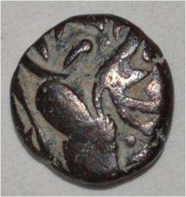 Obverse Horseman to the left. Man on the horseback and flagpole at the extreme right. Reverse Traces of Sri Singar Chandra .