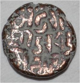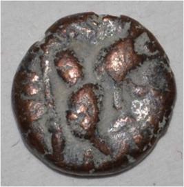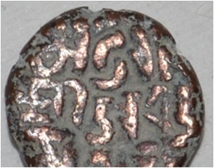 Obverse Horseman to the left. Man on the horseback and flagpole at the back of horse. Reverse Traces of Maharaja Sri Avtar Chandra .