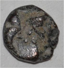 Obverse Horseman to the left. Man on the horseback. Reverse Traces of Maharaja Sri .