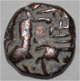 Obverse Horseman to the left. Man on the horseback. Reverse Traces of Maharaja Sri Megha .