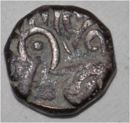 Obverse Horseman to the left. Man on the horseback and flagpole at the back of horse. Reverse Couchant bull facing right and traces of legend on the top.