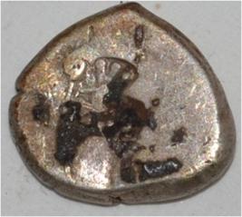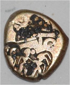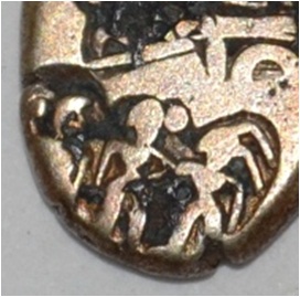 Obverse Three symbols are depicted.Two human at the bottom. Reverse Indistinct symbol.
