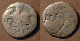 | Description / विवरण | Descrpn./Obv Stylised seated Goddess facing; Sharada legend, Sankara (on r.). Descrpn./Rev Stylised standing king design; Sharada legend, varma (on r.) |