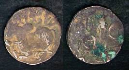 | Description / विवरण | Descrpn./Obv Recumbent bull facing left, wearing jhula (saddle cloth), with trisula (trident) symbol on rump. Above, legend in Sarada script Sri Samantadeva . Descrpn./Rev Rider with lance on caparisoned horse facing right. On left, Sarada letter bhi and on right, Sarada letter ta |