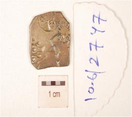 | Description / विवरण | A punch mark coin, rectangular in shape, having, sun, hill, floral and women in dancing form on obverse side. |