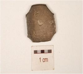| Description / विवरण | A punch mark silver coin, rectangular in shape, having sun, plant and floral motif on obverse side, irregular edge and slightly tarnished surface. |