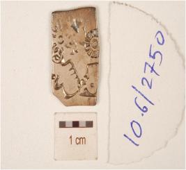 | Description / विवरण | A punch mark silver coin, rectangular in shape, having sun, floral motif and elephant and bull on obverse side and slightly tarnished surface. |