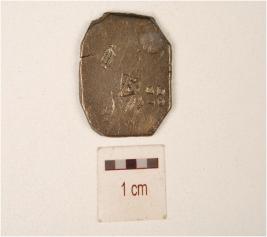 | Description / विवरण | A punch mark silver coin, irregularly roundish shape, having floral sun and deer on hill motif on obverse side and floral pattern on reverse side. |