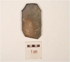 | Description / विवरण | A punch mark silver coin, rectangular shape, having sun, snake, deer on hill, swastik and floral pattern on obverse side and floral pattern on reverse side, cutting edge and slightly tarnished. |