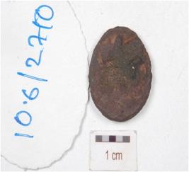 | Description / विवरण | A copper coin, round in shape, image of bull on obverse side, chemically treated surface and preserved made by cast technique. |