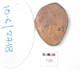 | Description / विवरण | A copper coin, round in shape, image of standing diety with left hand on akimbo and right hand raised depicted obverse side and diety riding on elephant is depicted on reverse side, made with cast technique, chemically treated and preserved. |