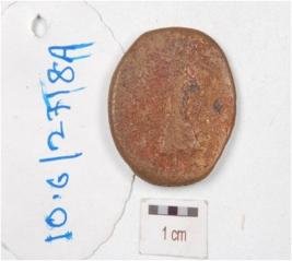 | Description / विवरण | A copper coin, round in shape, image of diety in dancing posture is depicted on obverse side and standing king on reverse side, made with cast technique, chemically treated and preserved. |