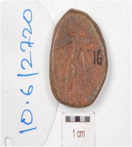 | Description / विवरण | A copper coin, round in shape. Image of standing diety with four hand in dancing posture depicted on obverse side and in reverse standing king with raised depicted, chemically treated and preserved, made with cast technique. |